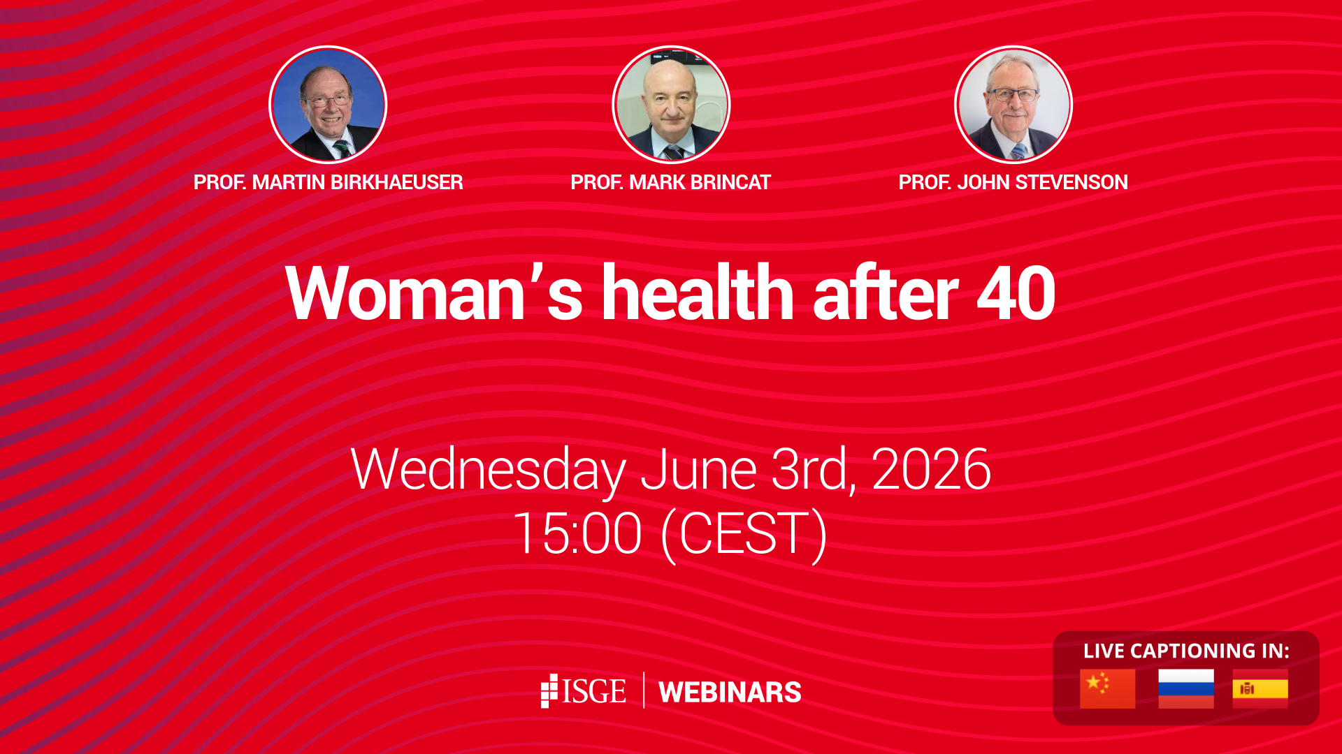 Moderator: Prof. Martin Birkhaeuser Speakers: Prof. Mark Brincat: PCOS beyond the age of 40: from diagnosis to treatment Prof. John Stevenson: Early detection and management of cardiovascular risk